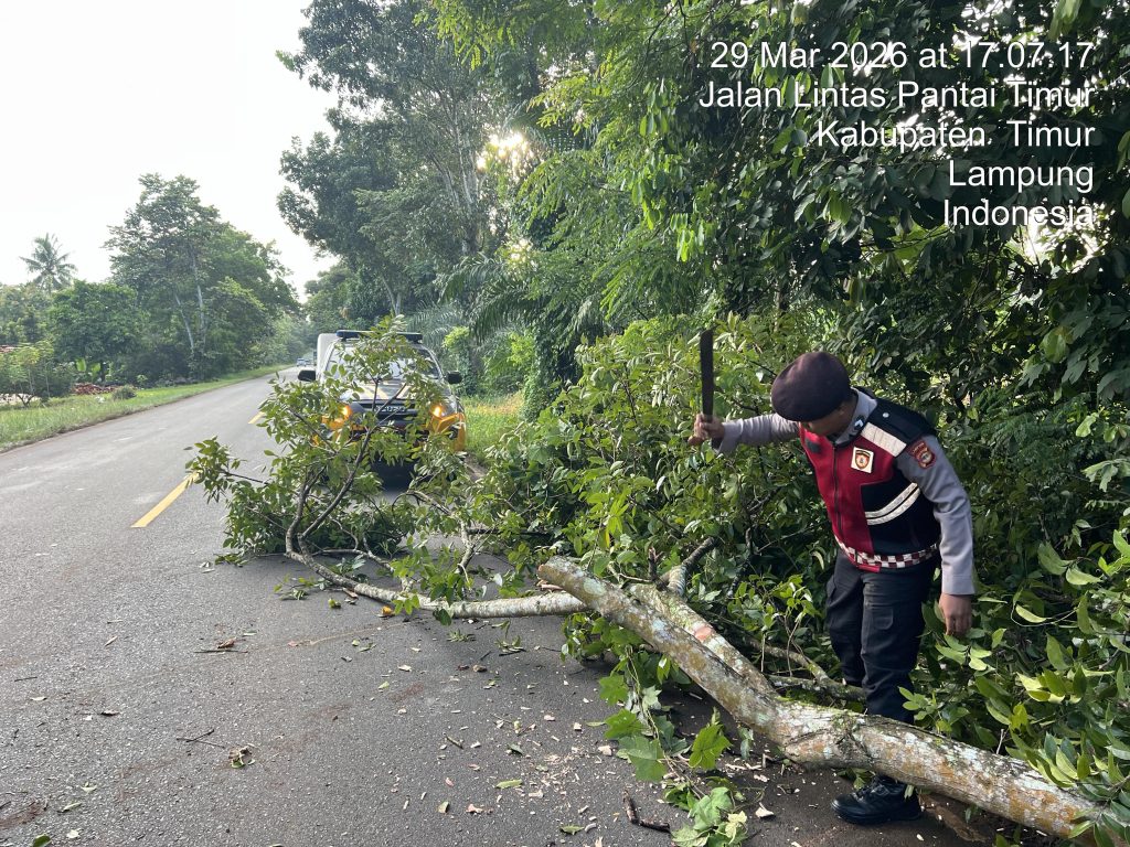 Lampung Timur-traznews.com- Respon cepat ditunjukkan oleh Personel Unit Patroli Sat Samapta Polres Lampung Timur dalam menangani dampak hujan lebat yang terjadi pada hari Minggu (29/3/26) sekitar pukul 17.00 WIB. Hujan dengan intensitas tinggi tersebut menyebabkan sebuah pohon tumbang dan menutup akses jalan di Jl. Raya Lintas Timur, Kecamatan Sukadana, Kabupaten Lampung Timur. Mendapatkan informasi dari […]