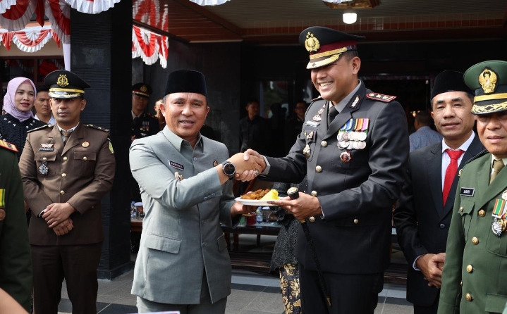 Lampung Barat -Bupati Lampung Barat, Parosil Mabsus mengikuti langsung upacara peringatan Hari Ulang Tahun (HUT) ke-79 Bhayangkara yang digelar di pelataran Polres Lampung Barat, Selasa 01 Juli 2025. Upacara dipimpin langsung oleh Kapolres Lampung Barat AKBP Rinaldo Aser, diikuti Forum Komunikasi Pimpinan Daerah (Forkopimda), Sekretaris Daerah (Sekda) Nukman, pihak Polri, TNI, Kejaksaan, Satpol PP, Dishub, […]