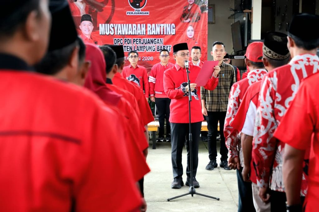 Lampung Barat- Ketua DPC PDI Perjuangan Lampung Barat yang juga Bupati dua periode, Parosil Mabsus, mengukuhkan 332 pengurus ranting dari empat kecamatan dalam sebuah agenda konsolidasi partai di kediamannya, Pekon Purawiwitan, Kecamatan Kebun Tebu, Sabtu (7/3/2026). Momentum Ramadan dimanfaatkan sebagai ajang memperkuat ideologi, militansi kader, sekaligus mempersiapkan pembentukan struktur partai hingga tingkat anak ranting. Pelantikan […]