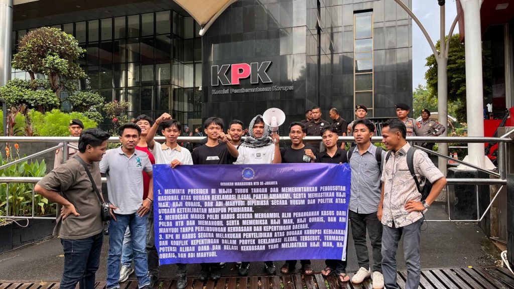 Jakarta ,Traznews. Com Jum,at 09 Januari 2026 Gerakan Mahasiswa Nusa Tenggara Barat (NTB) se-Jakarta menggelar aksi demonstrasi di depan Gedung Komisi Pemberantasan Korupsi (KPK) RI, Jumat (9/1/2026) pukul 13.00 WIB. Aksi ini dilakukan sebagai bentuk desakan keras kepada pemerintah pusat dan aparat penegak hukum agar segera mengusut dugaan reklamasi ilegal di kawasan Pantai Amahami, NTB, yang dinilai sarat pelanggaran hukum, penyalahgunaan wewenang, serta kejahatan lingkungan.