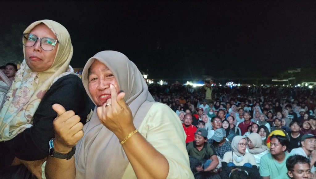 Menjelang akhir acara, suasana Lapangan Merdeka semakin meriah ketika ribuan warga kompak bernyanyi bersama mengikuti lagu-lagu yang dibawakan Denny Caknan. Gelombang suara penonton yang memenuhi lapangan menciptakan momen kebersamaan yang hangat dan penuh kegembiraan.
