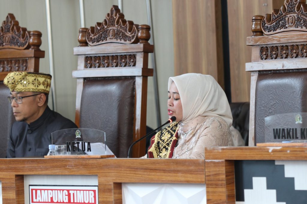 Ketua DPRD Lampung Timur Ridarotul Aliyah yang mempimpin paripurna tersebut menegaskan,Kabupaten Lampung Timur dibentuk berdasarkan undang-undang nomor 12 tahun 1999 tentang pembentukan Kabupaten daerah tingkat 2 ditetapkan pada tanggal 20 April 1999.