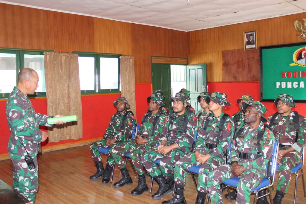 Puncak Jaya –  Traznews. Com Komando Distrik Militer (Kodim) 1714/Puncak Jaya menggelar pelatihan perorangan dasar teritorial dan dasar intelijen bagi seluruh personelnya. Kegiatan yang dilaksanakan pada hari Rabu ini dirancang secara terstruktur untuk memperkuat kapasitas anggota dalam menyusun data wilayah akurat, melakukan pemantauan kawasan strategis, serta mengolah informasi intelijen yang relevan dan dapat diandalkan,