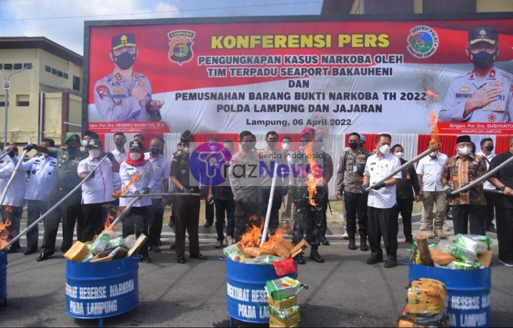 Bandarlampung -Polda Lampung musnahkan barang bukti Narkotika selama tiga bulan, periode Januari hingga Maret 2022 berupa sabu dan ganja senilai Rp 271,8 miliar.