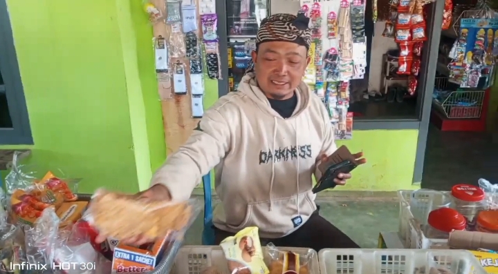 “Banyak tuh di sekitar kita penjual jajanan gorengan, cendol dawet, gado-gado, bakso, mie ayam, semua harus kita dukung dengan cara membeli dagangan mereka, saya yakin produk mereka asli dalam negeri” selanjutnya Akrom sembari tertawa kecil.